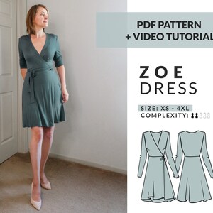 Zoe Knit Wrap Dress Digital Sewing Pattern Pdf Pattern Etsy